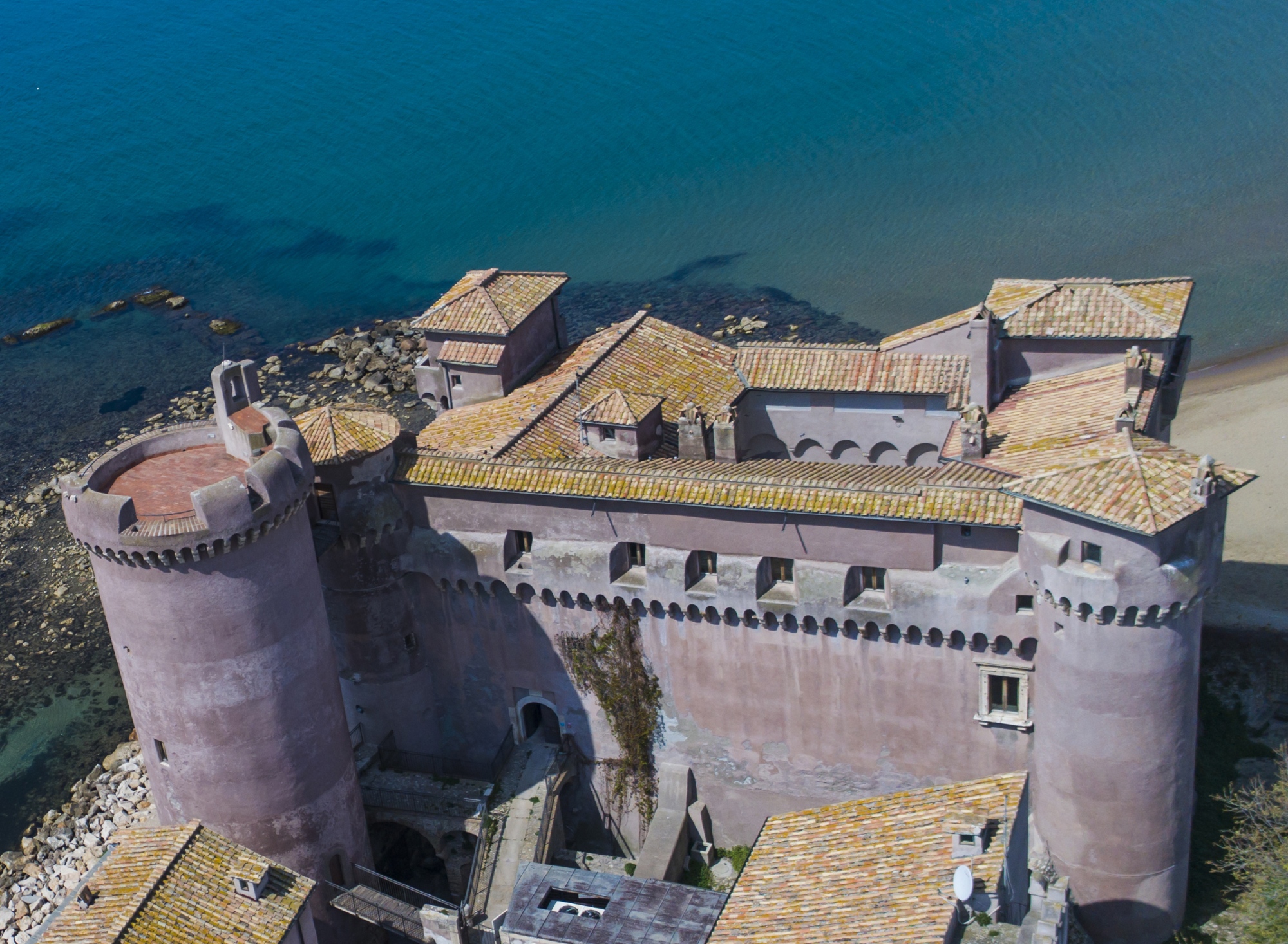 Un maniero con torri, merlature e la traccia di un antico ponte levatoio affacciato sul mare