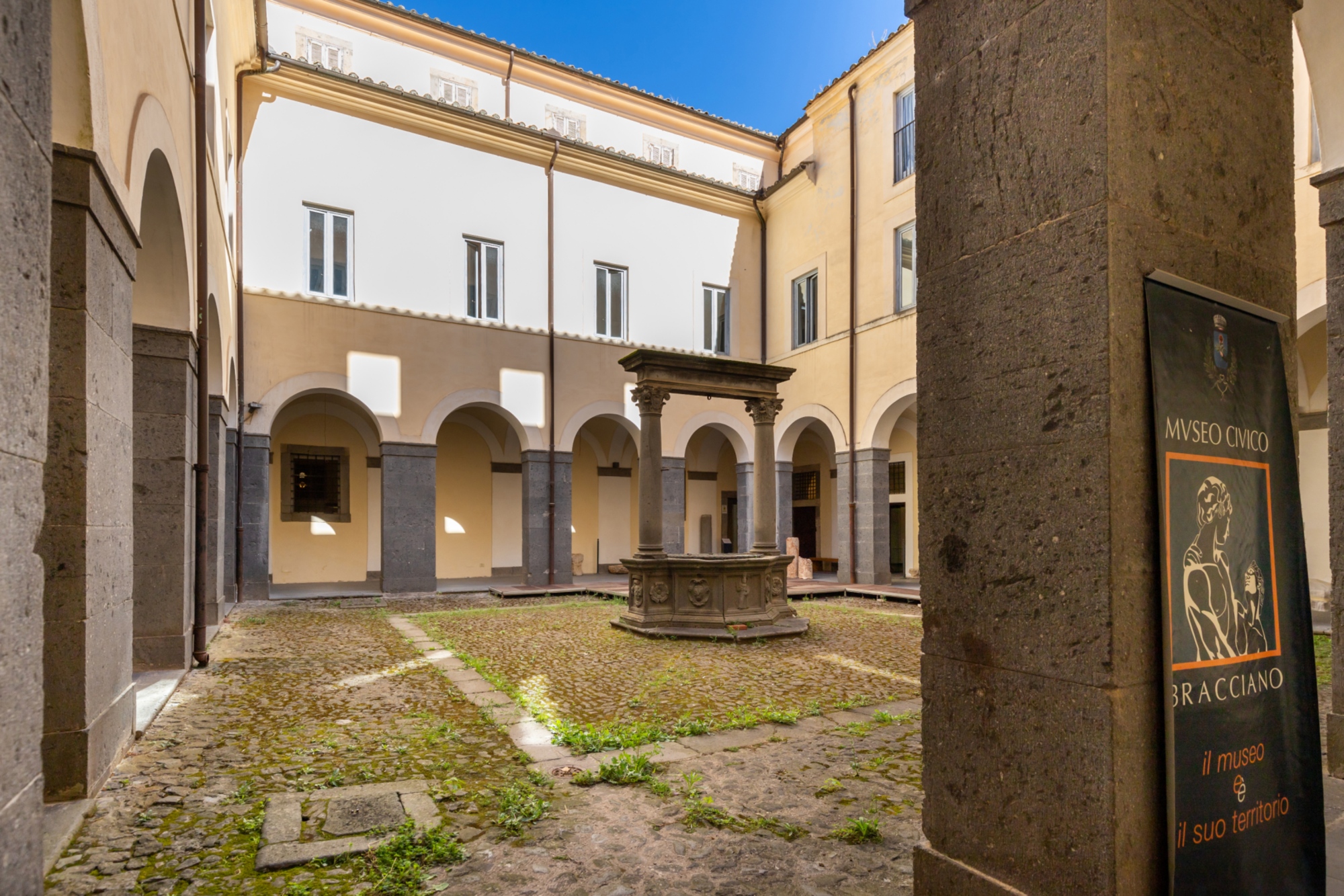 Il percorso espositivo all’interno del museo è animato in gran parte da reperti provenienti da collezioni private. Gli oggetti presentati narrano il passato della città di Bracciano, partendo dai primi insediamenti etruschi fino al XIX secolo, e sono raggruppati in tre sezioni: introduttiva, archeologica e storico-artistica. La prima contiene mappe e documenti che raccontano la storia della comunità, così come le varie pratiche antiche usate dai consiglieri comunali. La sezione archeologica, invece, comprende parte della collezione Panunzi, con oggetti risalenti a vari periodi, tra cui etrusco e paleocristiano, e sono ordinati secondo criteri cronologici. La sezione storico-artistica, comprendente opere di diversa natura, è divisa in tematiche, come ad esempio "La committenza e gli artisti", all’interno della quale si può ammirare il capolavoro di Cristoforo Stati (1556-1619). Un’altra sala è dedicata a "Testimonianze d’arte sacra" e comprende arredi liturgici, provenienti dalla vicina chiesa di Santa Maria Novella, parte del convento. Si segnala, in particolare, l’opera attribuita alla cerchia di Andrea Bregno, Cristo Salvator Mundi, datata alla fine del XV secolo.
